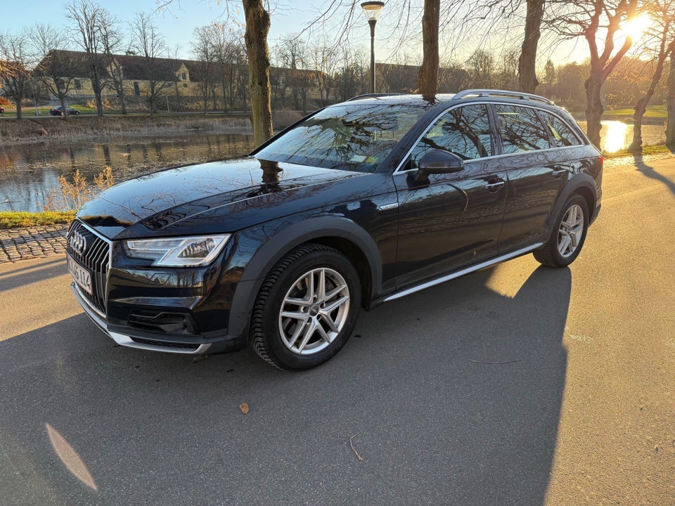 Bliv godt kørende i denne mørkeblå Audi A4 Allroad med den store 252 hk benzinmotor. Lækker læderkabine, digitale instrumenter, Apple CarPlay og meget mere.