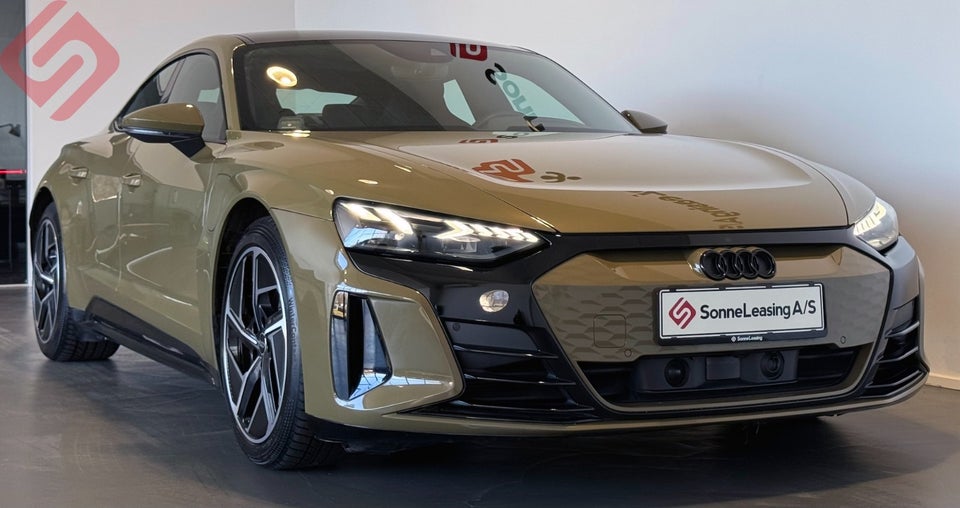 Audi E-tron GT i Tactic Green metallak med 476 hestekræfter. Af udstyr kan nævnes LED forlygter m. dynamisk blinklys m. forberedt til MATRIX LED, E-tron Sportslyd, varmepumpe, Audi Smartphone Interface, Apple CarPlay, Android Auto, fuld digitalt speedometer, el-sammenklappelige sidespejle, bakkamera, 3-zone klimaanlæg, sort optikpakke Plus, adaptiv fartpilot, sort himmel, parkeringssensor for- og bag, alu interiørlister, lys- og regnsensor, MMI Navigation Plus med touch, kontour ambiente kabinebelysning i flere farver, panorama glastag, komfortparkeringsklimafunktion, Adaptiv hastighedsassistent, Audi sound system, aux/usb indgang, sort læder/alcantara med sportssæder m. diamant syninger, Keyless entry, Keyless go, elektrisk bagklap, komfortnøgle inklusive sensorstyret bagagerumsoplåsning med safelock, Sportsæder Plus, elsæder, Audi Connect, assistentpakke Tour, nødbremseassistent, Business pakke, bluetooth, aut. nedbl. bak- og sidespejle, ISOFIX, sædevarme, voice control, 4x elruder, el-spejle med varme, fladbund sportsmultifunktionslæderrat med, DAB radio, kørecomputer, Audi Drive Select, splitbagsæde, auto-hold, armlæn, kopholder, service ok, ikke ryger, 20″ Audi Sport alufælge.