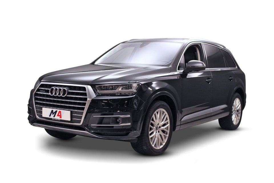Audi Q7 3,0 TDi Quattro 7prs (272 HK) i Orcasort metallic med Murillo brunt læderkabine.