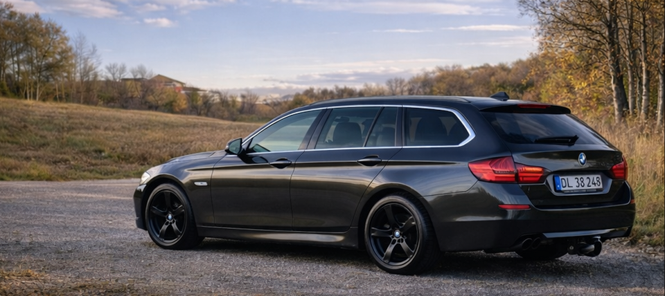 Veludstyret BMW F11 stationcar. Pæn, ren og lugtfri indvendig. Ikke ryger bil og ingen dyr. Nysynet og nyserviceret. Ingen mislyde, fejl eller andet. Alt fungerer som det skal. Fuld servicebog. Fik skiftet bremser i 2025. Gode vinterdæk. Delvis læderkabine, fastmonteret anhængertræk, parkeringssensor, elektronisk panorama- og soltag. Med kabinevarmer som kan styres via fjernbetjeningen. 2 nøgler medfølger