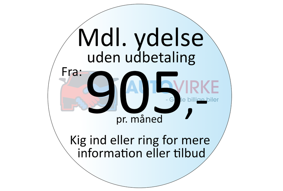 Vi kan finansiere bilen fra 905,- pr. måned UDEN udbetaling og vi tager gerne din bil i bytte.