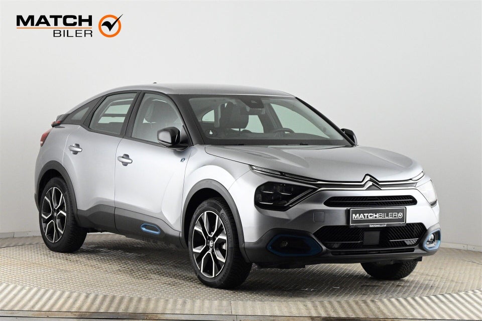 Veludstyret og velkørende Citroën ë-C4 med Lane-assist, skiltegenkendelse, højdejust førersæde, lændestøtte i førersæde. læderbeklædt multifunktionsrat, skiltegenkendelse, uopmærksomhedsalarm, sort lakeret spejlkapper, luftdyser til bag, USB i bag, 195/60 dæk m. 18" alufælge.