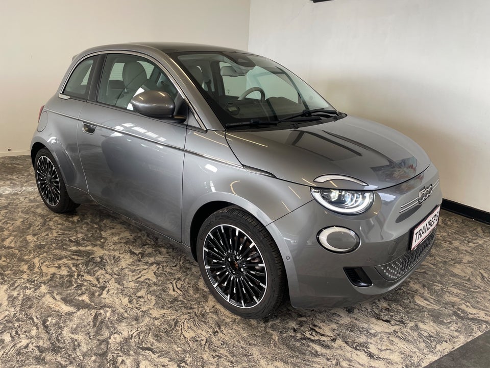 glastag, læderrat, digitalt cockpit, multifunktionsrat, læderindtræk, splitbagsæde, kørecomputer, el-sidespejle, fuld led forlygter, 17" alufælge, højdejust. førersæde, tågelygter, fuldaut. klima, nøglefri adgang, adaptiv fartpilot, nøglefri tænding, udv. temp. måler, sædevarme, navigation, dab+ radio, bakkamera, blindvinkelsassistent, esp, vognbaneassistent, 6 airbags, parkeringssensor (bag), parkeringssensor (for), skiltegenkendelse, regnsensor, Pack Dynamic Sikkerhed, Super fin topmodel i Fiat 500e