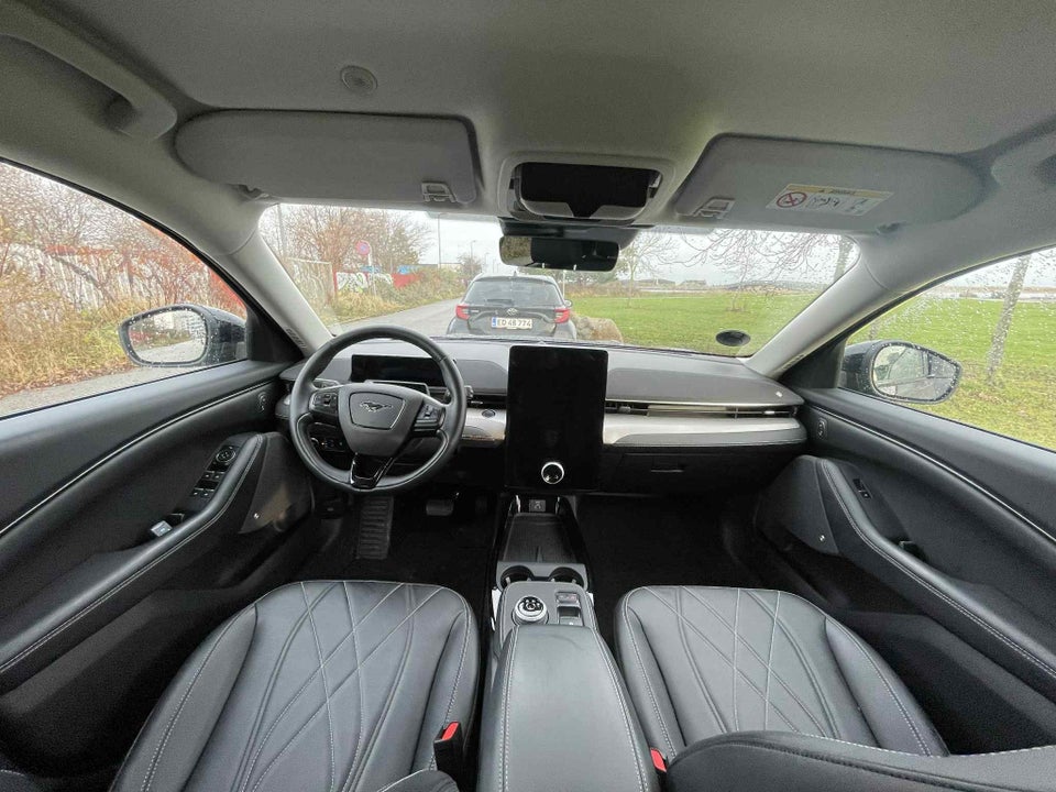 Masser af god plads: Der hvor der normalt vil være en "5-liters V8’er", er der nu blevet plads til et opbevaringsrum med 100 liter bagage. Der er afløb i bunden, så man kan opbevare vådt og beskidt sportsudstyr, vandrestøvler og lignende. Ud over det frontplacerede opbevaringsrum kommer elbilen med et bagagerum bagtil med en volumen på 402 liter. Slår man bagsæderne ned, har Mustang Mach-E 1420 liters opbevaringsplads.