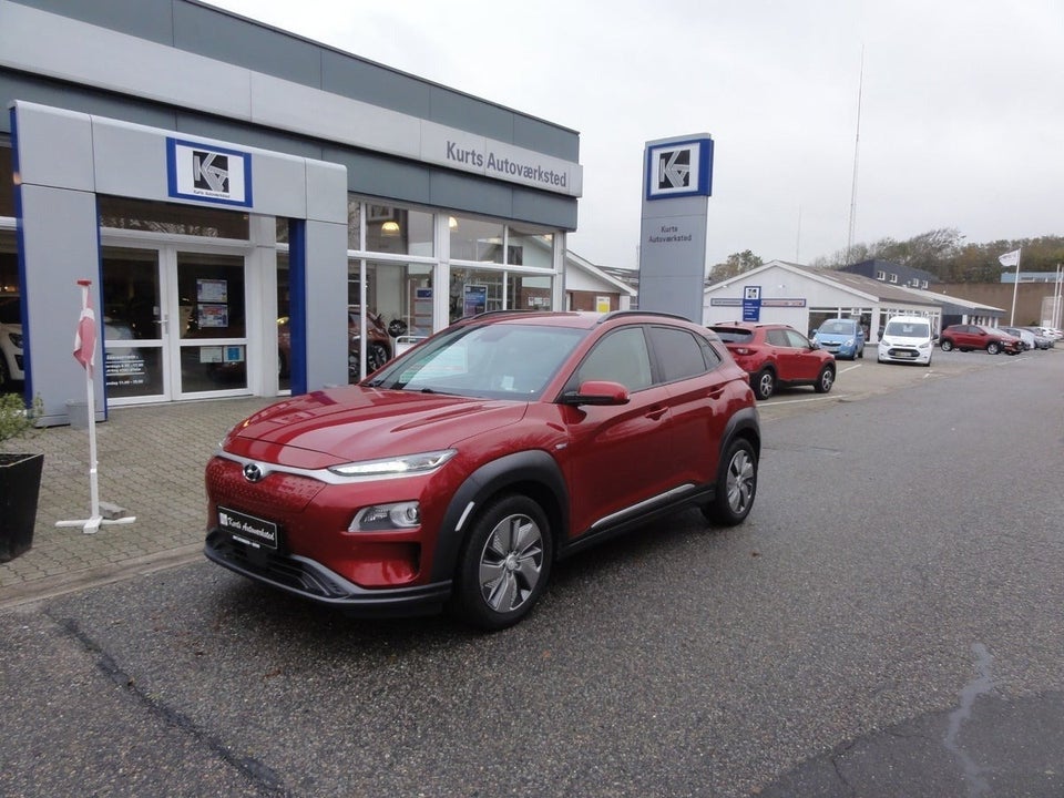 FLOT OG VELHOLDT HYUNDAI KONA EV 64! FINDES I DENNE FLOTTE RØDMETAL FARVE. ALT I UDSTYR! STÅR PÅ FLOTTE HELÅRSDÆK.
