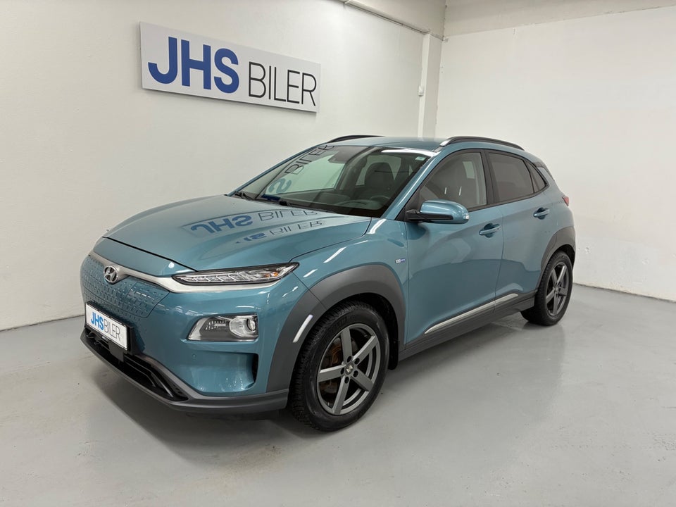 Hos JHS Biler har vi fået denne fine KONA EV 64KWH, bilen er en Premium med head up display, El-lædersæder og meget mere!