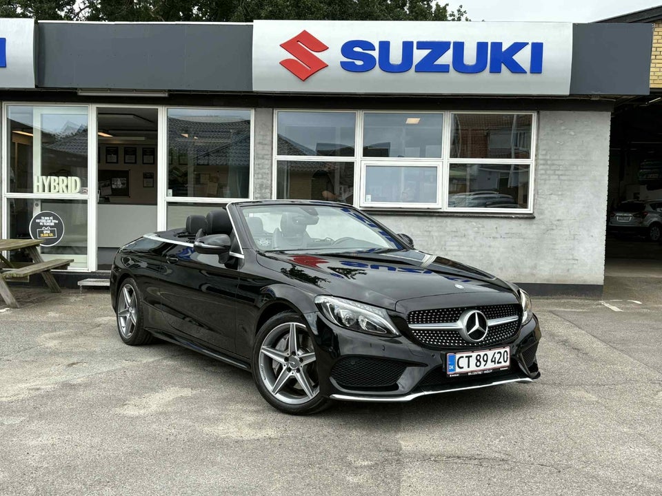 SE HER!!! Mercedes-Benz C200 2,0 AMG Line Cabriolet – Kun 69.000 km – Super fræk i sort & med fuld udstyrspakke!
