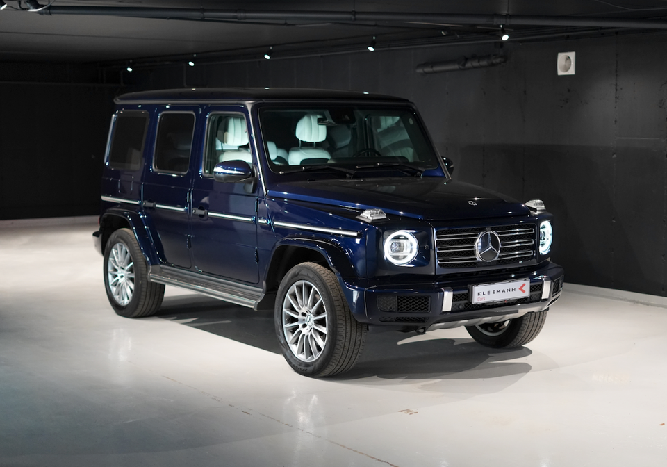 Denne topfede Mercedes-Benz G400d i den flotte Canvasite Blå Metallic er netop landet og står klar til hurtig levering.