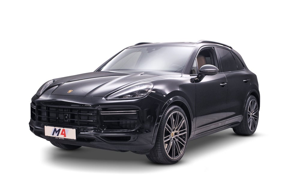 Porsche Cayenne Turbo (550 HK) I Jet black metallic med Two-Tone kompletlæderkabine i Sort/Berige.
