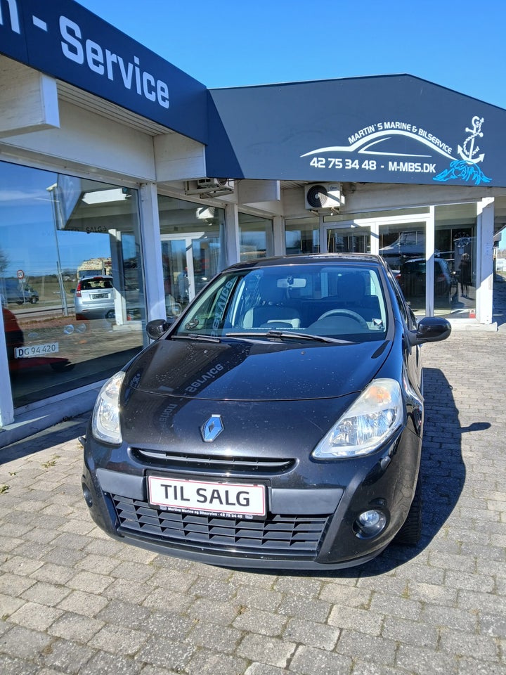 Velkørende og økonomisk Renault Clio III. Bilen bliver leveret nysynet og er udstyret med partikelfilter, hvilket gør den mere miljøvenlig og egnet til daglig kørsel.