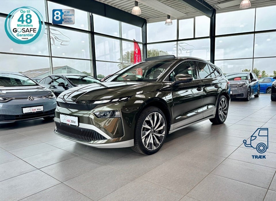Oplev en topudstyret Škoda Enyaq 85x i den elegante Olibo Green – en elektrisk SUV med masser af power, luksus og teknologi.