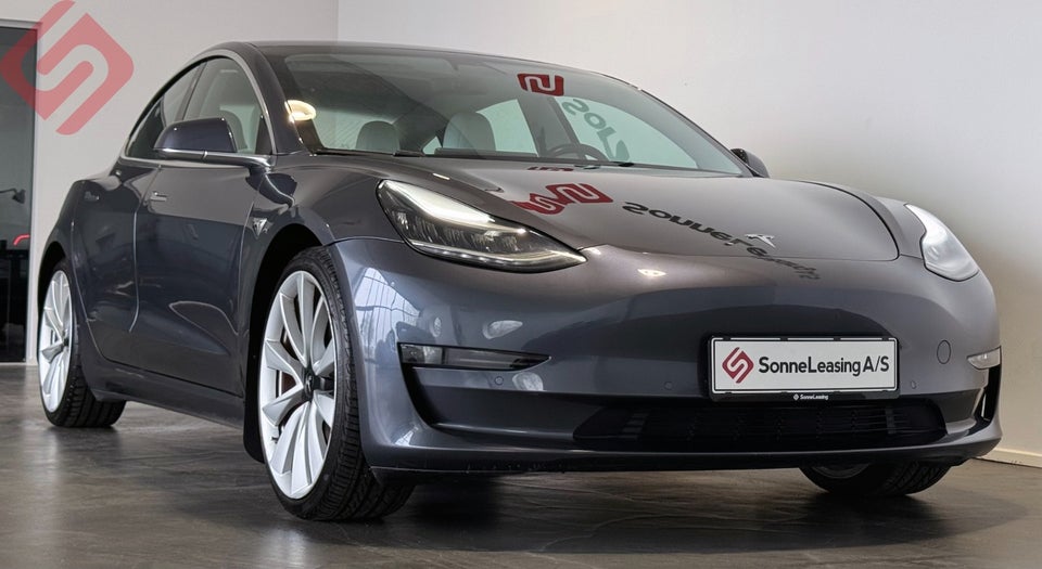 Tesla Model 3 Performance AWD. i gråmetal med 490 hestekræfter. Af udstyr kan nævnes røde bremsekalibre, Navigation, soundsystem, bakkamera, parkeringssensor for- og bag, komfort adgang, LED lygter, fjernlysassistent, panorama glastag, alarm, trådløs mobilopladning, hvid læderkabine, Fuldjusterbare el-sæder, bremseassistent, keyless-entry, Collision warning, Apple CarPlay, Android Auto, multifunktionslæderrat, 2-zone klima, aktiv fartpilot, Lane Assist, kørecomputer, regnsensor, sædevarme, DAB radio, auto. nedbl. bakspejl, elspejle med varme, bluetooth, isofix, 19″ Tesla Performance alufælge, service ok, ikke ryger..