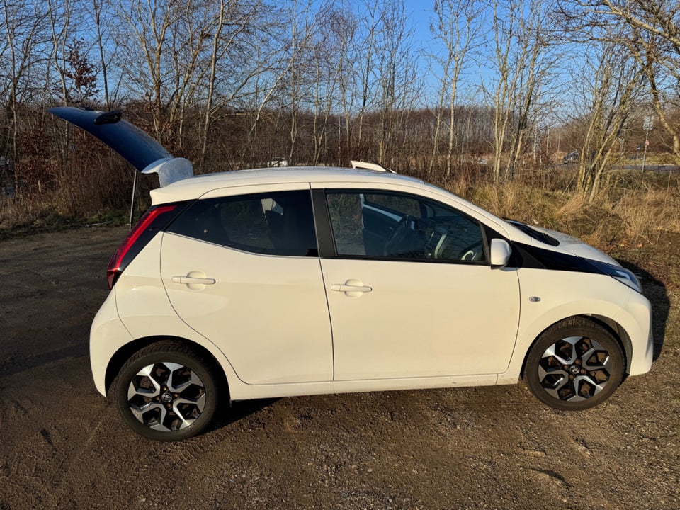 Nysynet og nyserviceret Toyota Aygo - med udstyr der bl.a. omfatter læderkabine og Apple Carplay. Monteret med vinterdæk og der medfølger sommerdæk uden fælge.