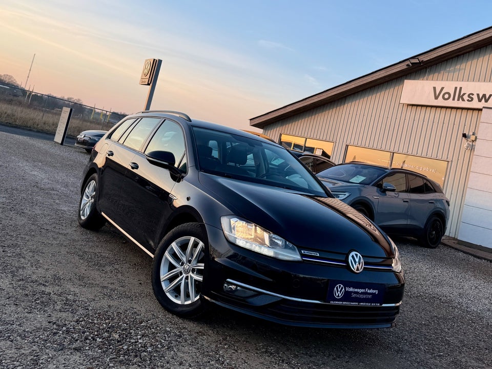 Denne Volkswagen Golf VII 1,5 TSI 130 HK. Comfortline Variant DSG7 BMT sælges hos Volkswagen Faaborg A/S.