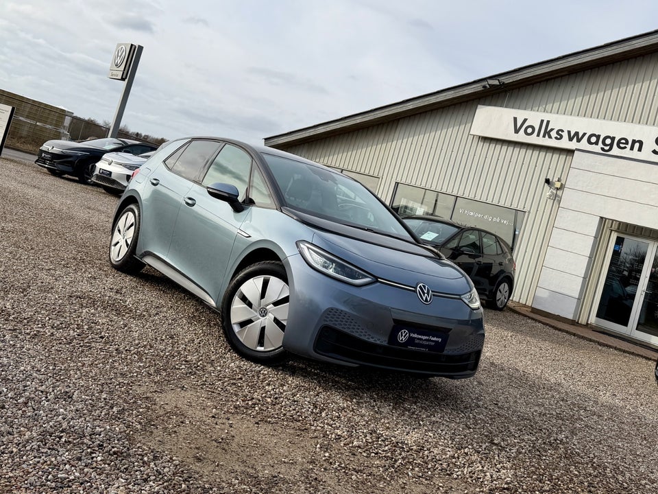 Denne Volkswagen ID.3 Pro 58 kWh med op til 422 km WLTP rækkevidde i den flotte Stonewashed Blue Metallic, udstyret med Matrix LED forlygter - adaptiv fartpilot - bakkamera - navigation - keyless adgang - varme i rattet sælges hos Volkswagen Faaborg A/S.