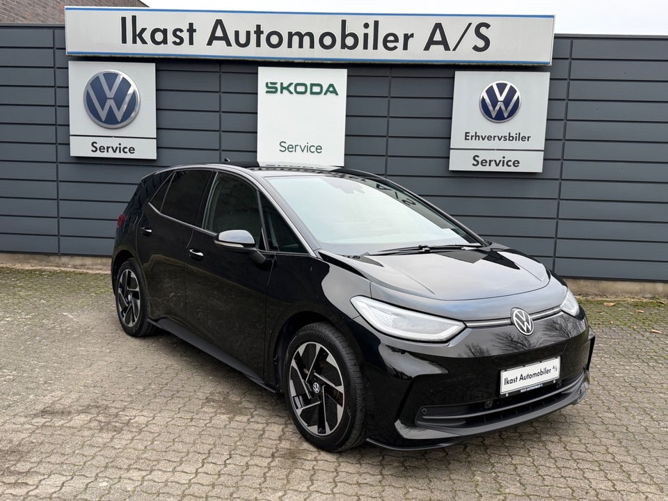 kørecomputer, mulighed for tilkøb af VW Tryghedspakke i op til 5år eller 150000 km (hvad som kommer først) merpris kr 6.000,- Komfortpakke, eksteriørpakke, assistent pakke, 58 kWh batteri, opgivet rækkevide iflg WLTP km 431, digitalt cockpit, bagagerumsdækken, multifunktionsrat, læderrat, stofindtræk, højdejust. forsæder, splitbagsæde, ambiente belysning, mørk loftbeklædning, 18" alufælge, el-klapbare sidespejle m/varme, fuld led forlygter, matrix led forlygter, mørktonede ruder i bag, områdebelysning, automatgear, fuldaut. klima, 2 zone klima, varmepumpe, fjernb. centrallås, nøglefri adgang, nøglefri tænding, adaptiv fartpilot, udv. temp. måler, sædevarme, 4x el-ruder, elektrisk parkeringsbremse, dab radio, navigation, håndfrit til mobil, apple carplay, regnsensor, bakkamera, parkeringssensor (bag), parkeringssensor (for), dæktryksmåler, træthedsregistrering, skiltegenkendelse, isofix, automatisk lys, fjernlysassistent, airbag, vognbaneassistent