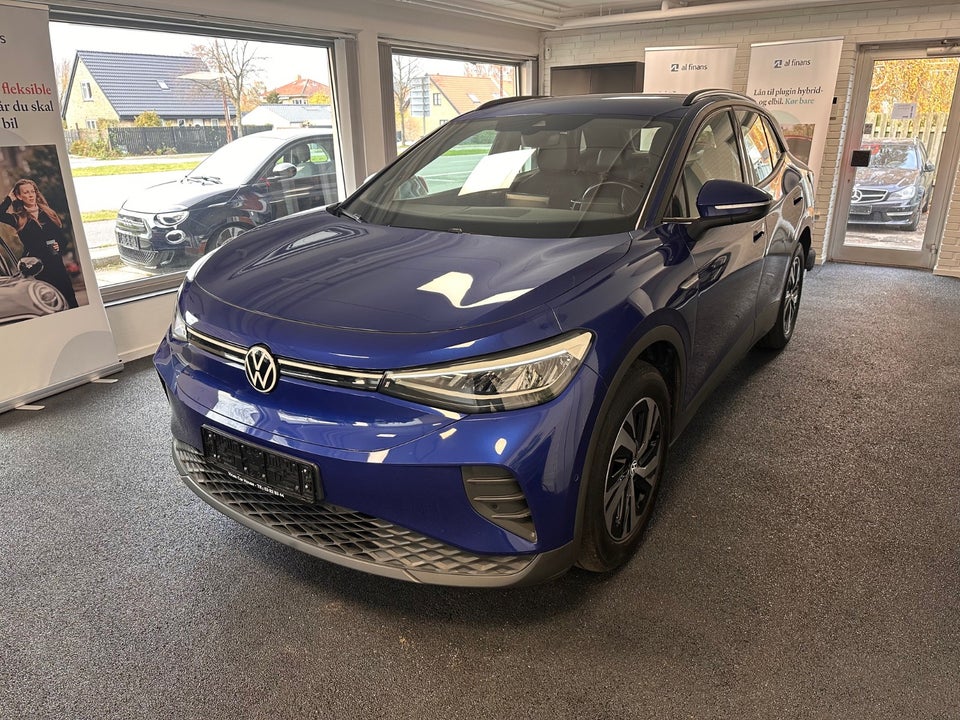 VW ID4 Pure Performance i Blue Dusk Metallic med lækkert udstyr så som Intelligent parkeringsassistent, trådløs AppleCarPlay, Keyless Open & Go, Adaptiv fartpilot etc.