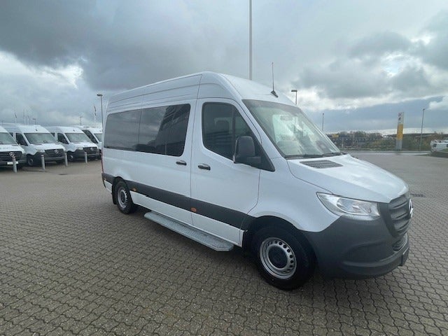 Hesselbus A/S tilbyder denne fine 9. personers minibus (7+1+1 sæder). Bussen er yderst velegnet til skole-, flex-, handicapbus og somTaxi, grundet de talrige rails i gulvet og en yderst flexibel og rengøringsvenlig sædeindretning, fx. kan alle sæder afmonteres uden brug af værktøj og sæder i bussens højre side er både klap- og roterebare...Bussen har selvfølgelig 9. trin aut. gear som standard, derudover Distronic (adaptiv fartpilot), oliefyr og ekstra elektrisk varmluft som giver hurtig opvarmning. Bussen er udstyret med Mercedes orginale varmeveksler i passagerkabinen med betjening fra instrument brættet. Førersæde er AGR-godkendt (Aktion Gesunde Rûgge = kvalitets tildeling fra tyske fysioterapeuter) dvs. lændestøtte, armlæn, multi- og vægtjusterbart førersæde m. varme, Bussen er monteret med ekstra batteri/skillerelæ og 500 kg. DK-Lift med trådløs fjernbetjening. Bussen kan køres med kørekort kat. "B" og kan leveres med det samme.