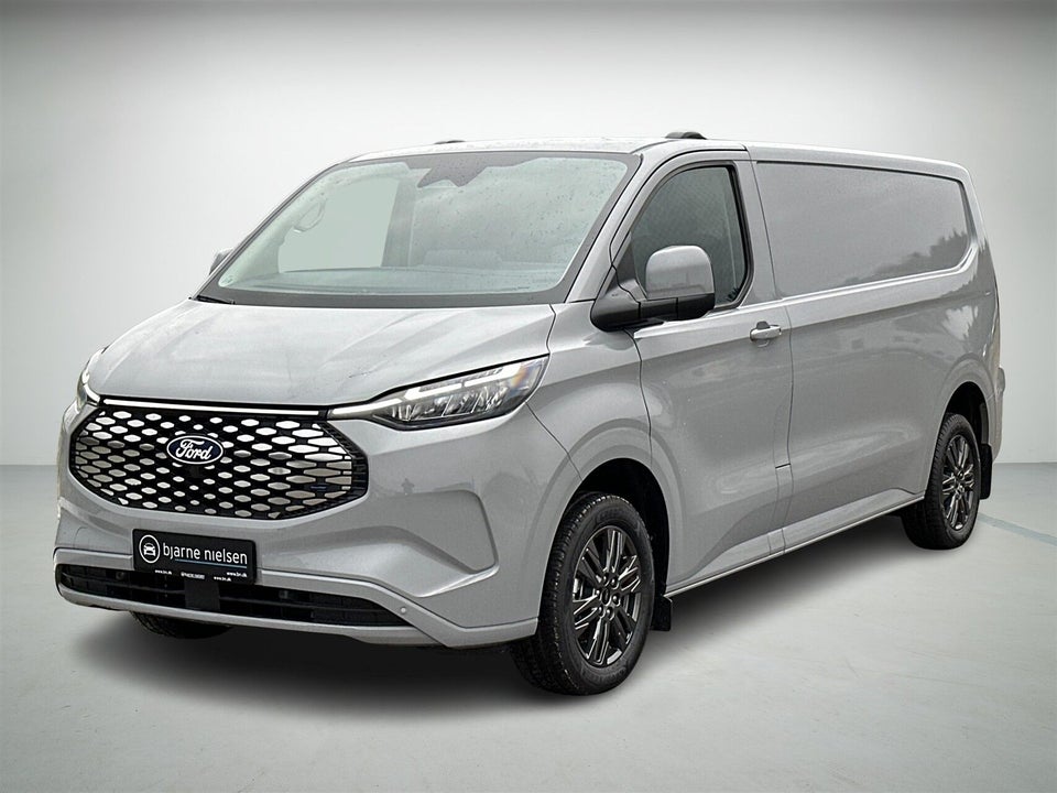 Ford E-Transit Custom Limited L2 – 218 HK i den flotte Grey Matter med 17" Carbonized Grey alufælge.