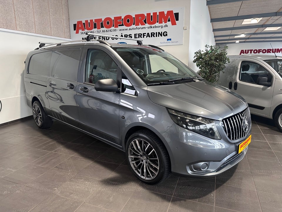 ekstra lang 4x4 med masser af udstyr, nypris i flg. Skat kr. 636.596, 9 trins automatgear, 2 zone klima, adaptiv fartpilot, fuld led forlygter, led kørelys, fjernlysassistent, parkeringssensor for/bag samt bakkamera, navigation, apple carplay, android auto, håndfrit til mobil, dab radio, usb-a tilslutning, webasto motorkabinevarmer med timer, 19" vinteralu. samt sommerhjul ( 8 fælge og dæk ), træk til 2.500 kg. , el-klapbare sidespejle m/varme, regnsensor, automatisk nødbremsesystem, læderindtræk, højdejust. førersæde med armlæn, træbund/beklædt/led lys i varerum, krom frontgrill, mørke lygter, tagrails/bøjler, kørecomputer, sædevarme, alarm, complete og cargo pakke, euro 6 motor, downhill funktion, dynamic select, 70L. tank, 1 ejer, service o.k. ved Mercedes, db. airbags, esp, billig leasing med fri km. samt finansiering tilbydes, optil 3 års garanti og/eller fejlfri fdm-attest